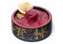 Inclus: 1 soupe + 1 salade Fine tranches de thon cru posés sur du riz vinaigré parsemées de graines vinaigré. |