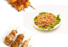 | Description | Menu composé de 3 choix Inclus: 1 soupe + 1 salade + 1 riz 4 brochettes de boulettes de poulet, 1 brochette de poulet, 1 brochette de bœuf au fromage et du nouille sauté au poulet Ingrédients: poulet, bœuf, fromage, nouille |