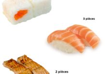 Menu composé de 3 choix Inclus: 1 soupe + 1 salade + 1 riz 6 pièces maki neige thon, 3 pièces sushi saumon et 1 paire brochette de saumon Ingrédients: saumon cru, saumon, riz vinaigré |