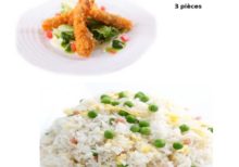 Description | Menu composé de 2 choix Inclus: 1 soupe + 1 salade + 1 riz riz cantonnais fait maison et 3 pièces de tempuras au crevette Ingrédients: riz, petit pois, crevette |
